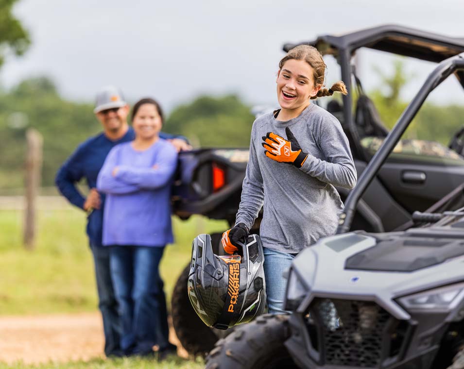 Le RZR 200 accompagne vos enfants de 10 à 16 ans tout au long de leur progression grâce au moteur EFI de 180 cm3, au siège et volant réglables, le siège passager et les accessoires en option.